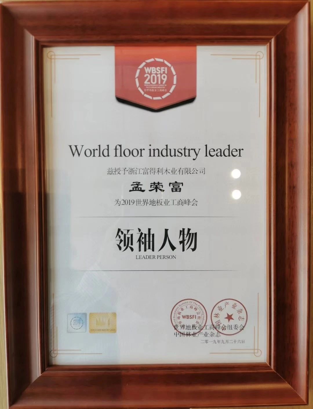 25年的时间,宅男在线视频地板已经铺入人民大会堂,宅男在线视频董事长孟荣富也从当年一个普通的木工伙计成长为了地板行业举足轻重的人物。2019年,第四届世界地板业工商峰会上富孟荣富荣膺“2019世界地板业工商峰会领袖人物”。